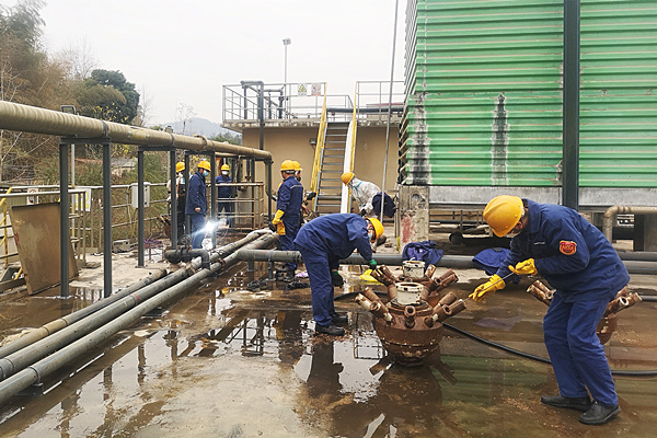 干部帶頭勇擔當,身先士卒保生產——記銅仁海創組織硝化池曝氣器維護清理作業