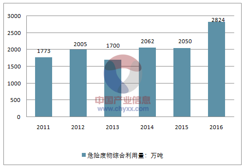? ? 2、2016 年危廢綜合利用量為2824 萬噸,同比增長38%